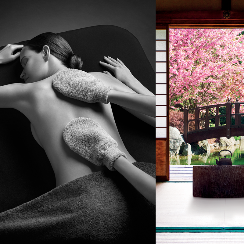 A unique protocol of Japanese inspiration : peeling with exfoliating gloves, relaxing massage of the entire body and specific massage of the feet in this nourishing, delicately perfumed ritual.