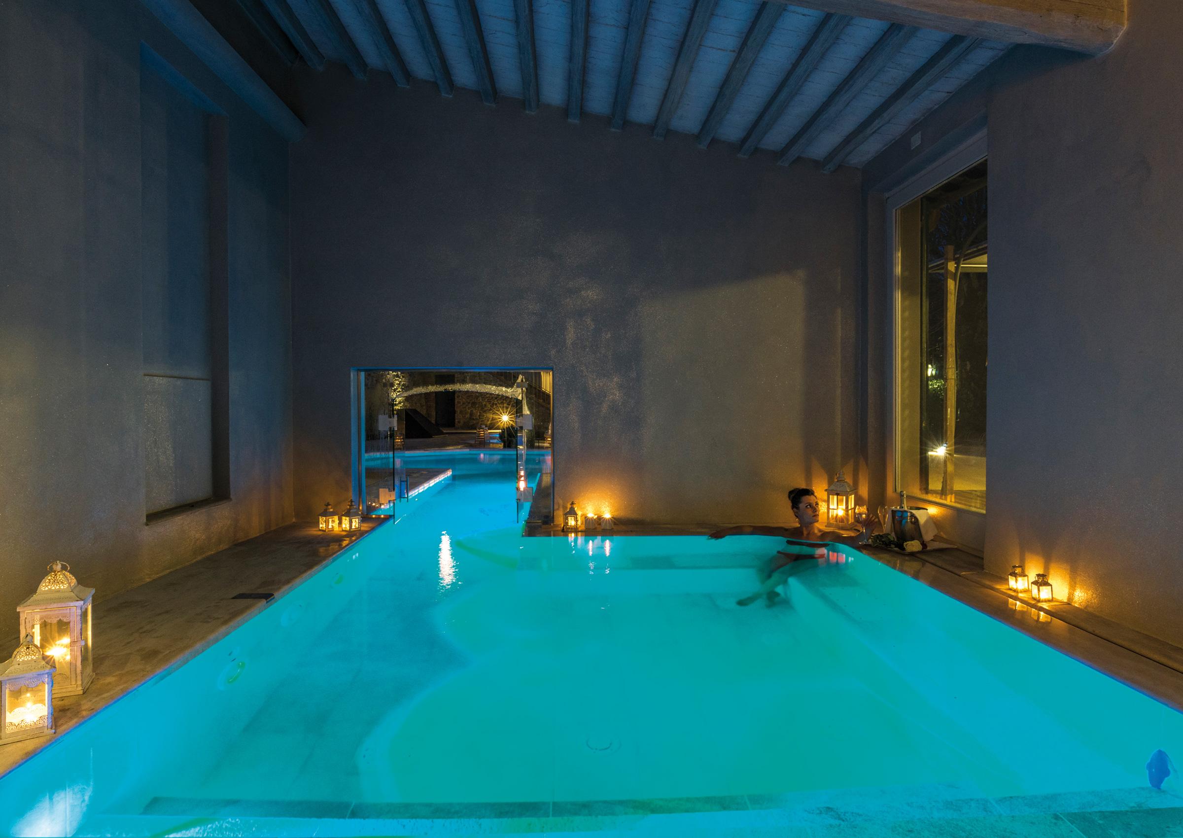 Near the Etruscan Cortona, surrounded by meadows vineyards and verdant Tuscan-style hills, AQVAVRA Wellness & Spa stands out. Located in an elegant eighteenth-century Villa, inside which there is a Secular park of over 30,000 square meters, with gardens that intertwine paths and evocative spaces. Crossing the threshold of AQVAVRA, you will find a place where space and time speak the language of ancient and mysterious civilizations, a paradise where the refinement creates a magical and engaging atmosphere, full of aromas and music that tell of distant lands. Room of salt, Sauna finlandese, Hamman… you will be the true protagonists of this timeless experience where reign absolute silence and relaxation. All you need to slip into a dream atmosphere and purify your body and spirit.